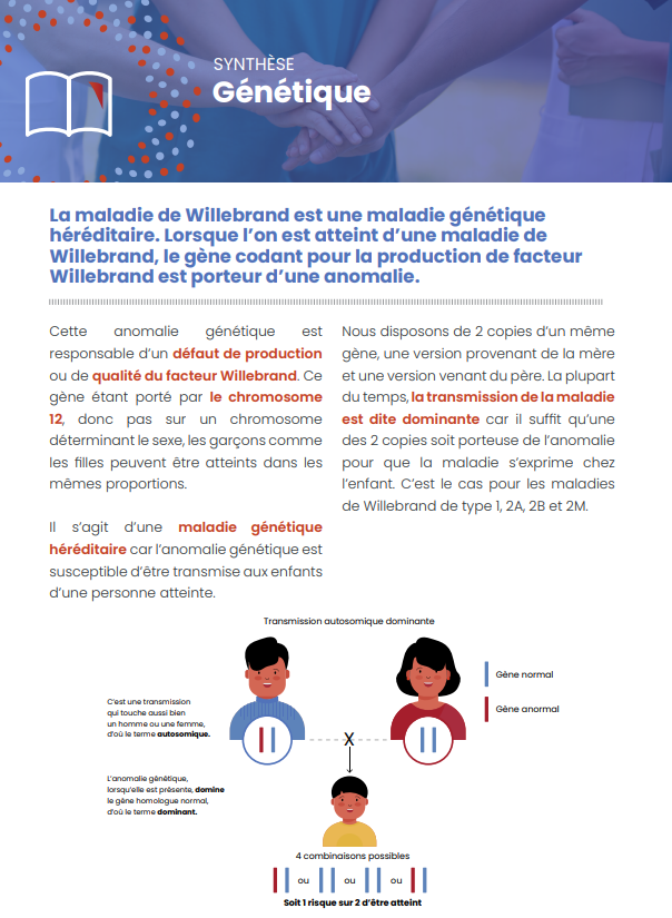 WILLEARNING propose 21 ateliers thématiques, déclinés selon la sévérité de la maladie, couvrant l’ensemble des dimensions du vécu avec une maladie de Willebrand : compréhension de la pathologie, gestion des saignements, traitements, chirurgie et actes invasifs, vie scolaire et professionnelle, activité physique, gynécologie, projet de grossesse, démarches administratives ou encore coordination avec des soignants non spécialisés.